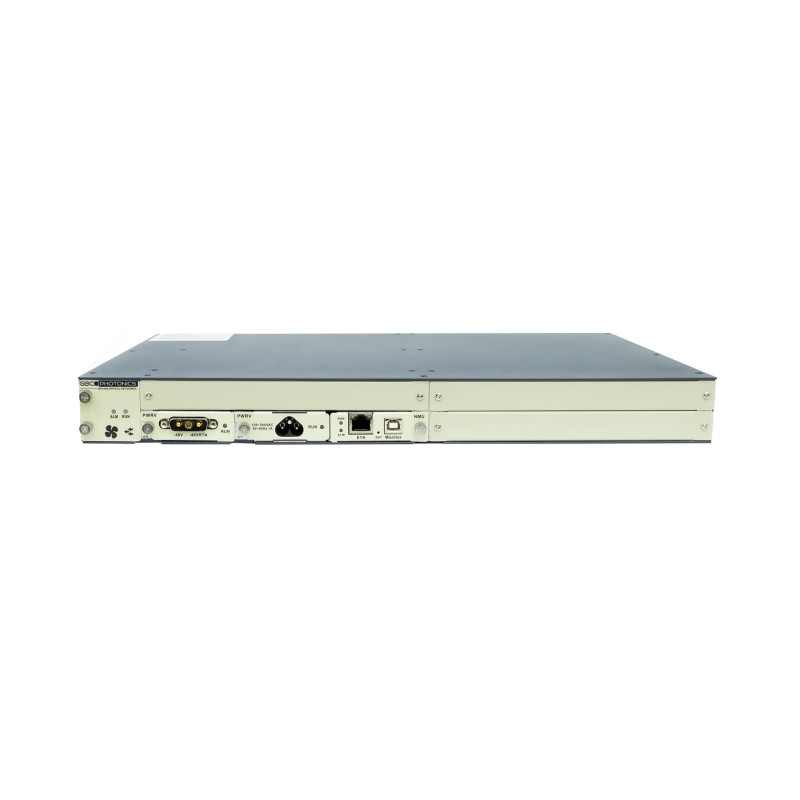 GPCH-3S1RU Chassis has 3 slots in which you can install GBC Photonics active devices, two redundant power supplies AC or DC in any configuration, fan unit and management card with console port and RJ-45. Device is 1U and can be mounted in standard 19" Rack cabinet.